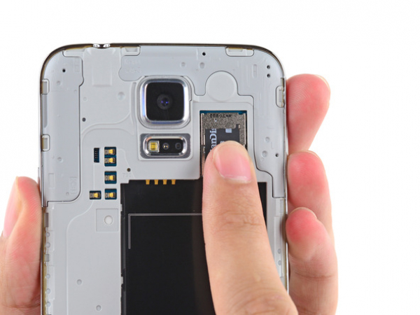 Gebruik je vingertop om de microSD kaart uit zijn sleuf te trekken.