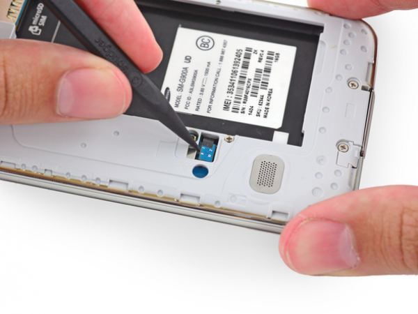 Het frontpaneel moet je niet volledig verwijderen, want het is nog steeds verbonden aan je telefoon door een connector.