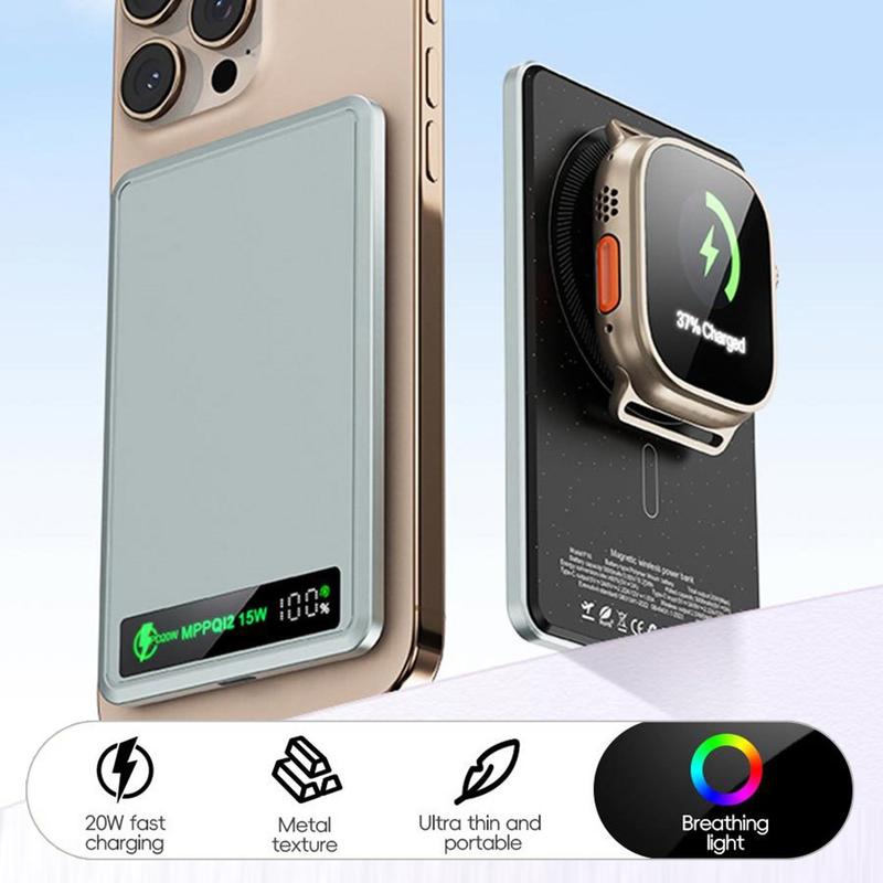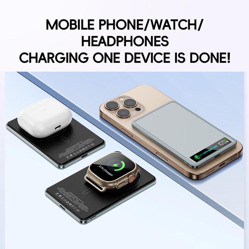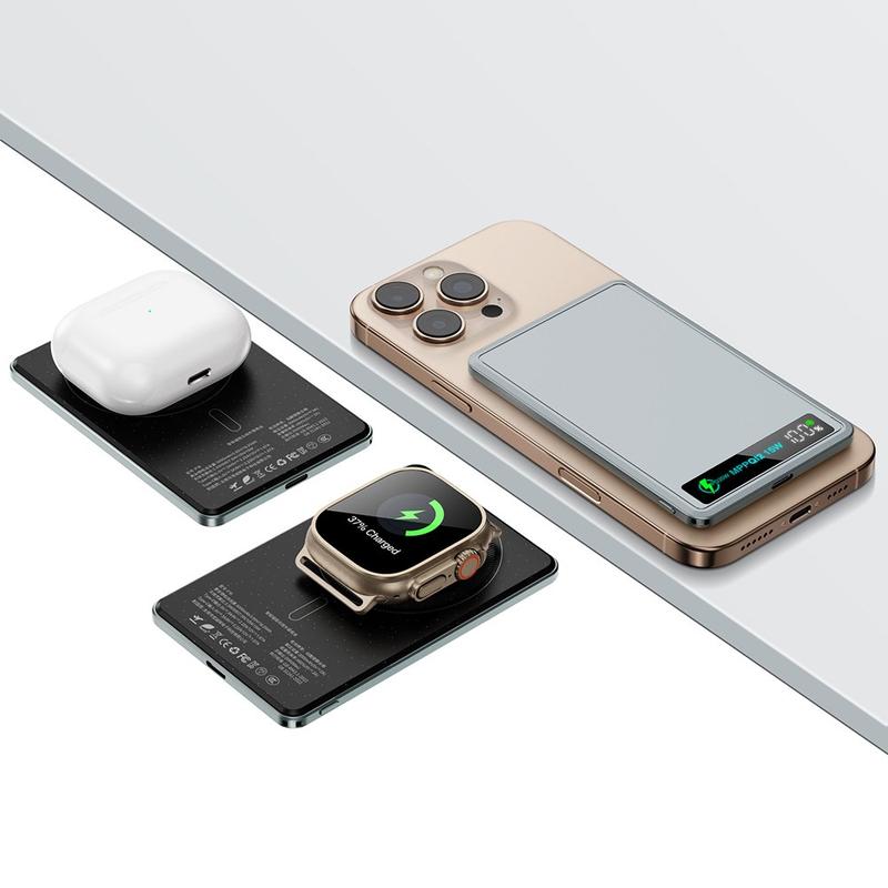 Met een capaciteit van 10.000 mAh biedt deze powerbank een goede balans tussen draagbaarheid en reserve-oplaadvermogen. Hij is zeer geschikt voor dagelijkse routines, of u nu op reis bent, op afstand werkt, vergaderingen bijwoont of gewoon een betrouwbare noodoplader bij de hand wilt hebben. Magnetische powerbanks zoals deze zijn bijzonder populair omdat ze kabelwarboel verminderen en het opladen snel en gemakkelijk houden.