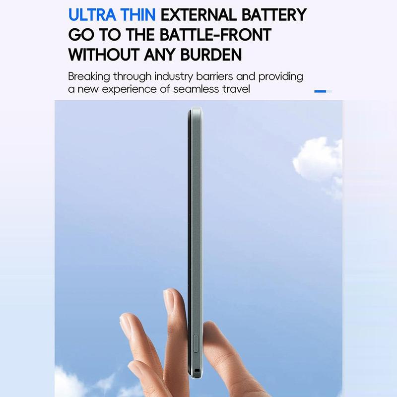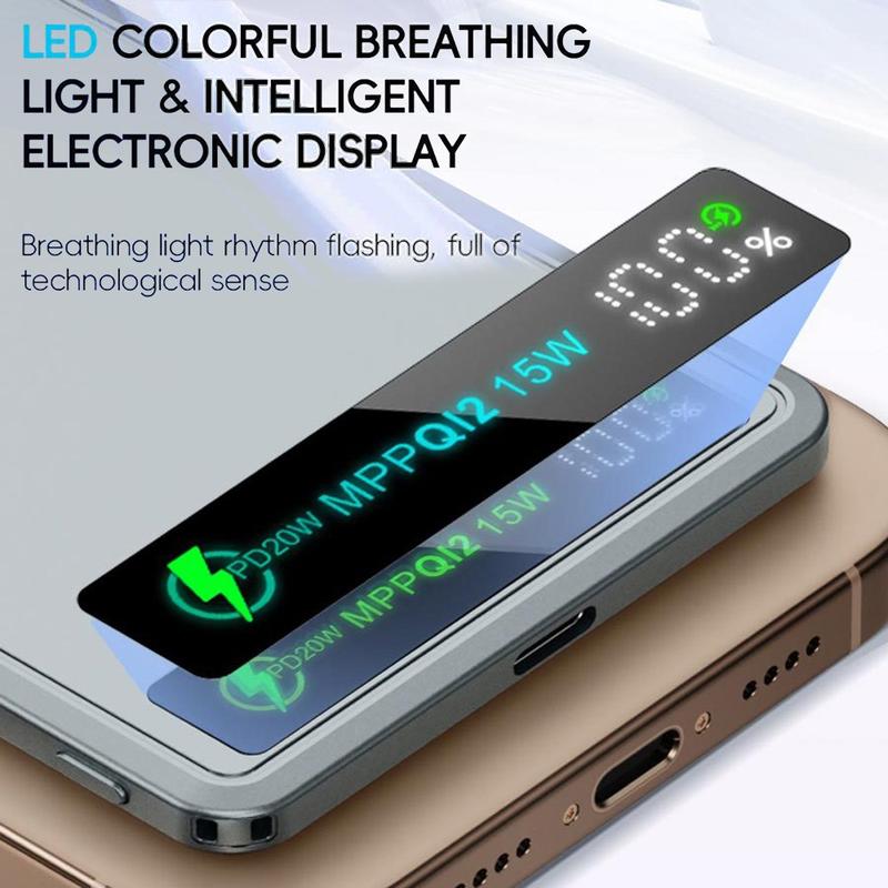 Een duidelijk digitaal display toont het resterende batterijniveau, waardoor u de beschikbare stroom nauwkeuriger kunt controleren dan met standaard indicatielampjes. De behuizing combineert een aluminiumlegering met kunststof voor een strakke en toch duurzame afwerking, waardoor de powerbank een hoogwaardige uitstraling heeft en tegelijkertijd lichtgewicht en draagbaar blijft. Dankzij het ultradunne ontwerp is hij gemakkelijk op te bergen en mee te nemen zonder dat hij veel ruimte inneemt.