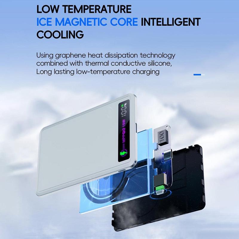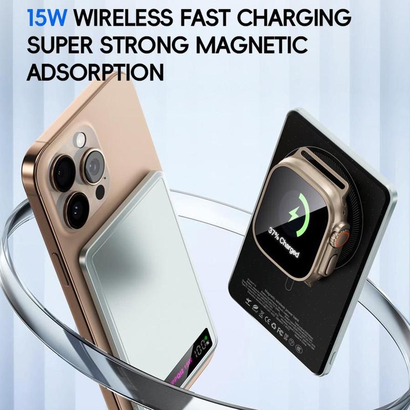 Met een capaciteit van 10.000 mAh biedt deze powerbank een goede balans tussen draagbaarheid en reserve-oplaadvermogen. Hij is zeer geschikt voor dagelijkse routines, of u nu op reis bent, op afstand werkt, vergaderingen bijwoont of gewoon een betrouwbare noodoplader bij de hand wilt hebben. Magnetische powerbanks zoals deze zijn bijzonder populair omdat ze kabelwarboel verminderen en het opladen snel en gemakkelijk houden.