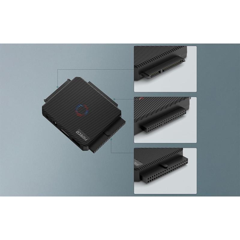 FIDECO PL03 universele adapter - eenvoudig beheer van gegevens van verschillende schijven. De FIDECO PL03 is een veelzijdige USB 3.0 naar IDE/SATA-adapter, waarmee je tot drie harde schijven tegelijk kunt aansluiten. Het compacte ontwerp, de hoge gegevensoverdrachtssnelheid en de brede compatibiliteit maken het ideaal voor zowel professionals als thuisgebruikers. Met het apparaat kun je snel en handig bestanden overzetten tussen verschillende apparaten, terwijl je gegevens eenvoudig kunt archiveren en beheren.