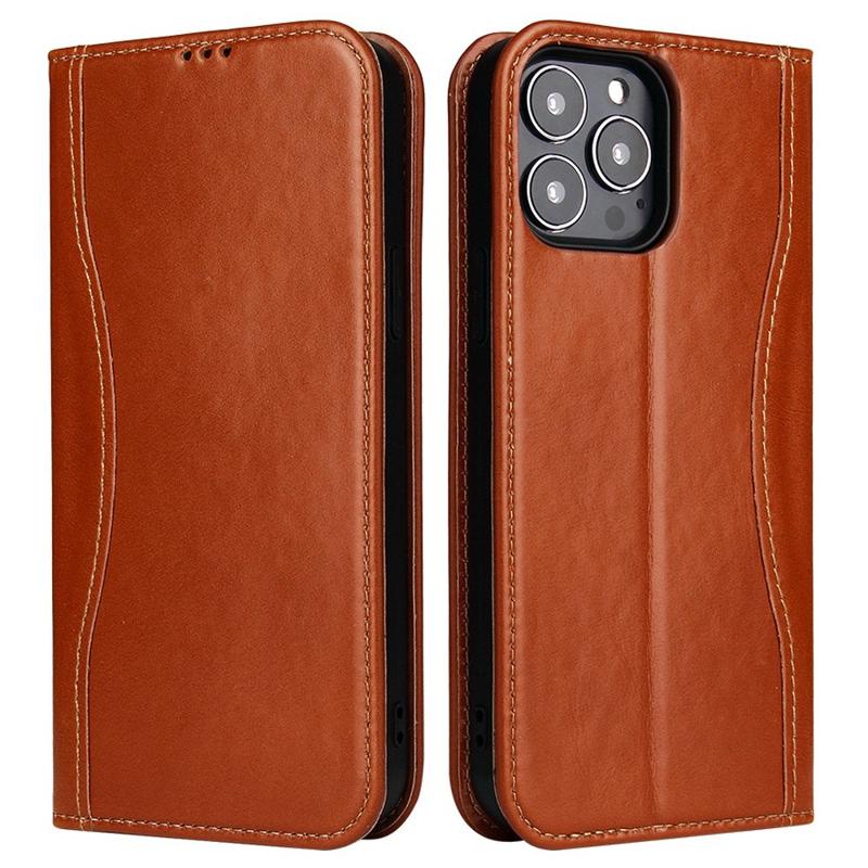 Fierre Shann iPhone 14 Pro Wallet Leren Hoesje - Bruin