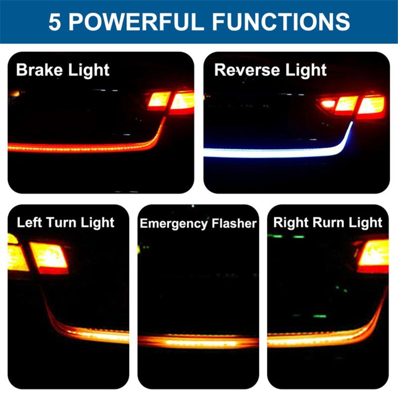 - Multifunctionele achterlichtstrip: looplicht, rem, richtingaanwijzers en achteruit/achteruit (afhankelijk van bedrading)