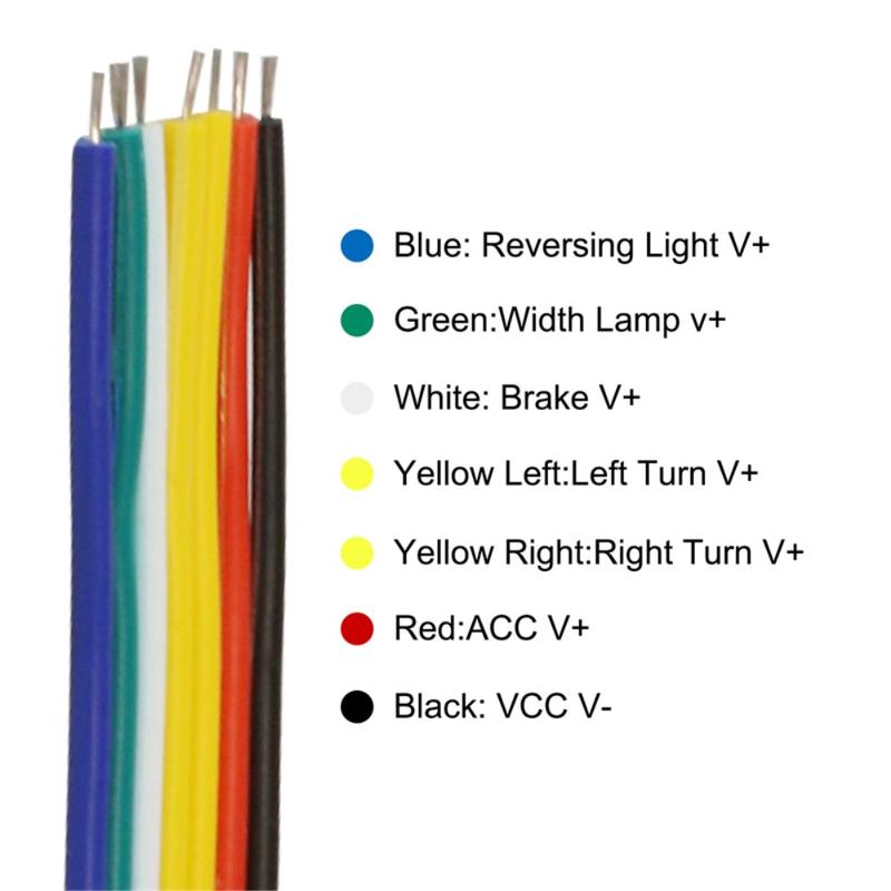 - Groene draad (looplicht): ijsblauw licht wanneer aangesloten op ACC / kleine lichtlijn (12V)