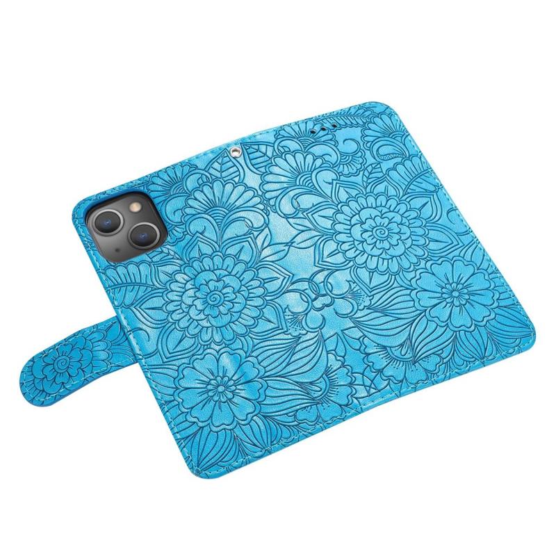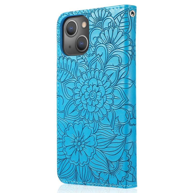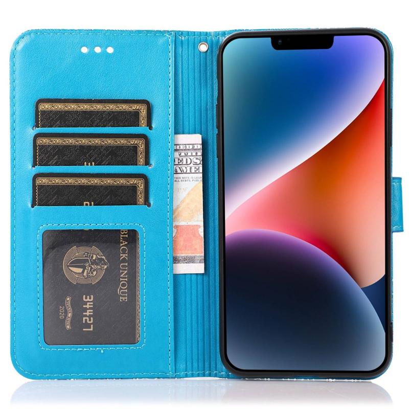 Voor iPhone 14 Bedrukt Bloempatroon PU Lederen Telefoon Cover Stand Schokbestendig Telefoon Portemonnee Hoesje met Riem: