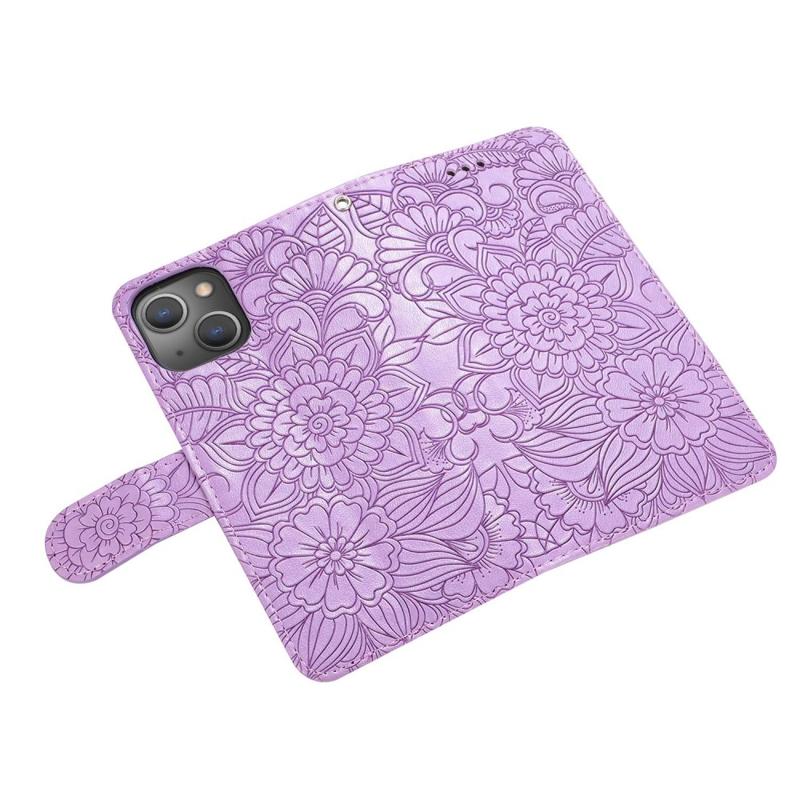 Voor iPhone 14 Bedrukt Bloempatroon PU Lederen Telefoon Cover Stand Schokbestendig Telefoon Portemonnee Hoesje met Riem: