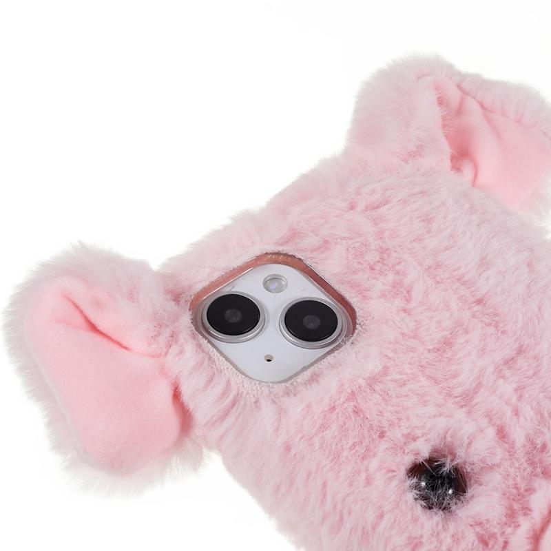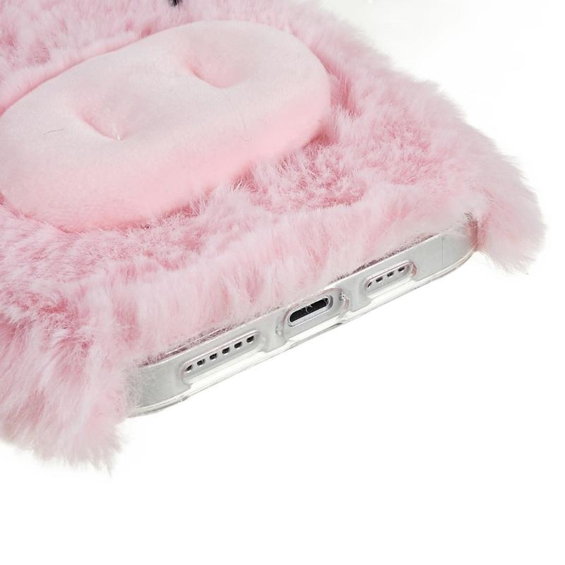 • Voor iPhone 14 Plus Leuke Cartoon Varken Ontwerp Zachte Pluche + TPU Beschermhoes Telefoon Drop-proof Cover