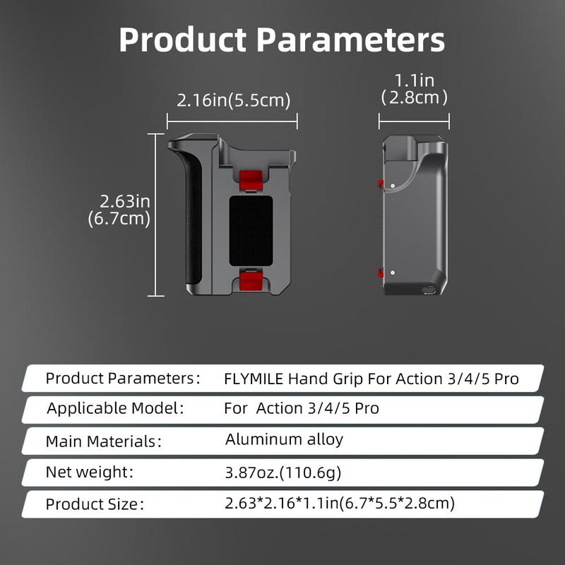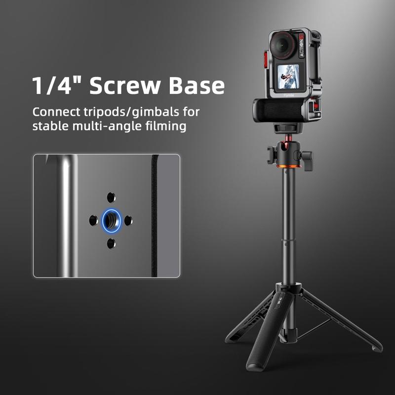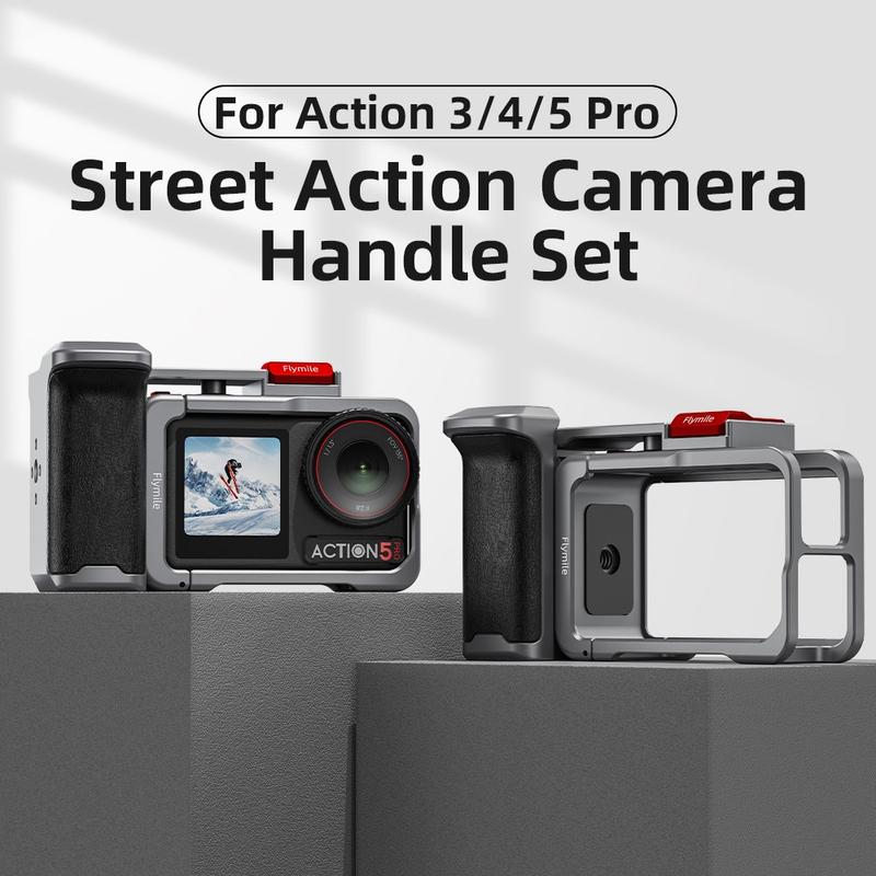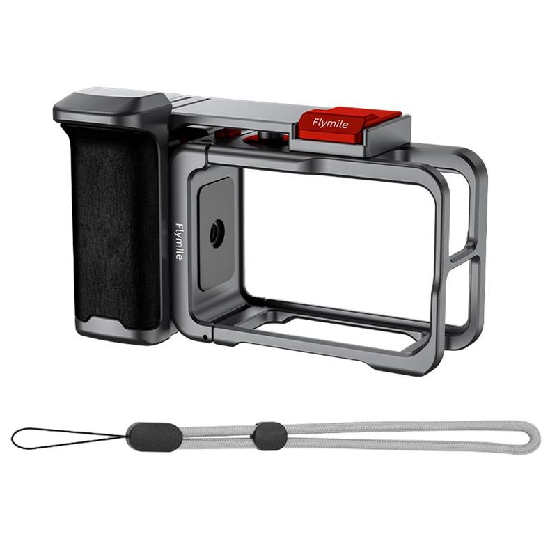 De Flymile-handgreep en -kooi bieden extra bescherming, comfort en uitbreidingsmogelijkheden voor accessoires in een compacte opstelling - perfect voor creatieve gebruikers die op zoek zijn naar een stabielere, veelzijdigere DJI Osmo Action-rig voor buitenopnames en handheld-opnames.