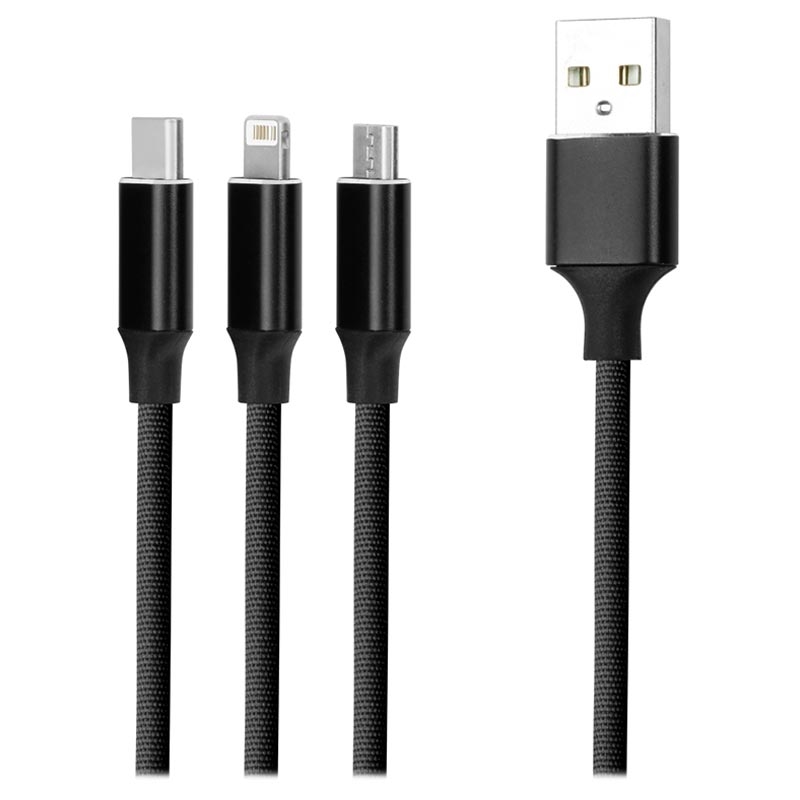 Forever 3-in-1 Gevlochten USB Oplaadkabel - Lightning, Type-C, MicroUSB, 2A