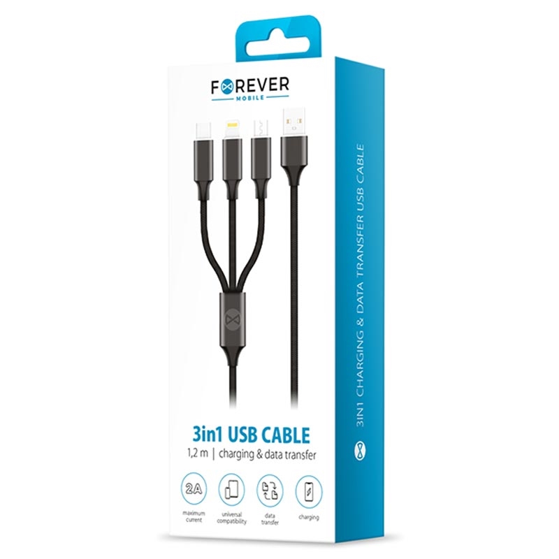 - Hoogwaardige 3-in-1 USB-oplaadkabel van Forever