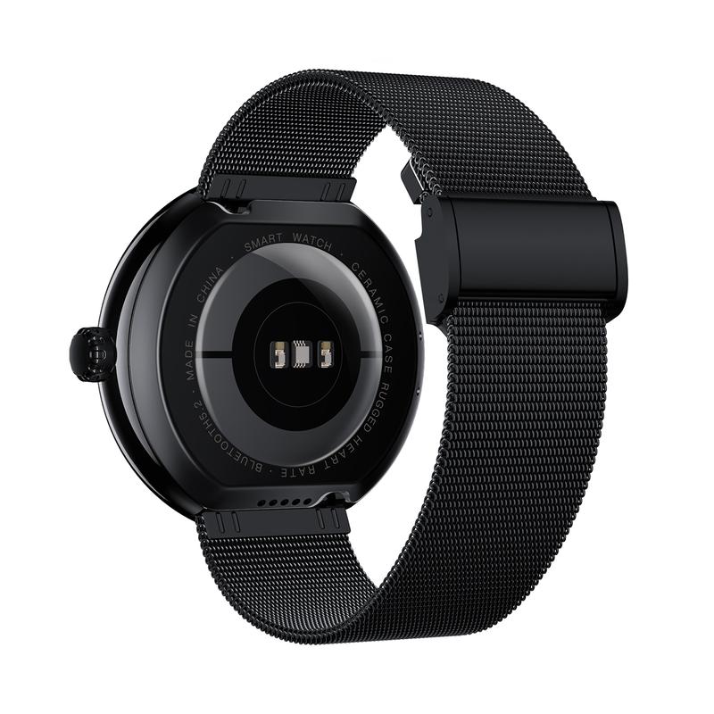 - Functies: Hartslag, bloeddruk, SpO₂, slaapmonitor, menstruatietracker, hydratatieherinnering, oproep- en meldingswaarschuwingen, ademhalingsoefeningen, weer, alarm, stopwatch, muziek- en camerabediening