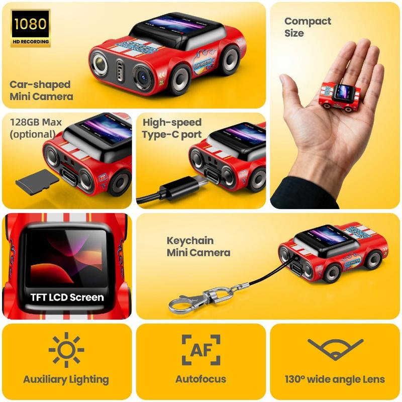 - Mini-draagbare camera ter grootte van een duim met sleutelhangerontwerp in de vorm van een auto