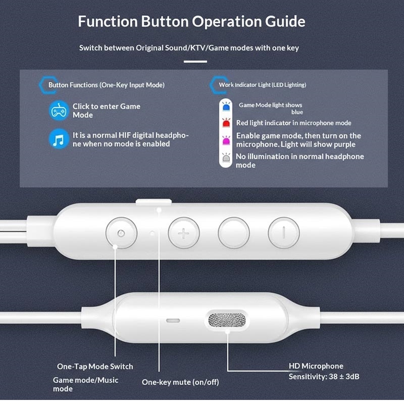- Met één druk op de knop schakelen tussen gamingmodus en muziekmodus