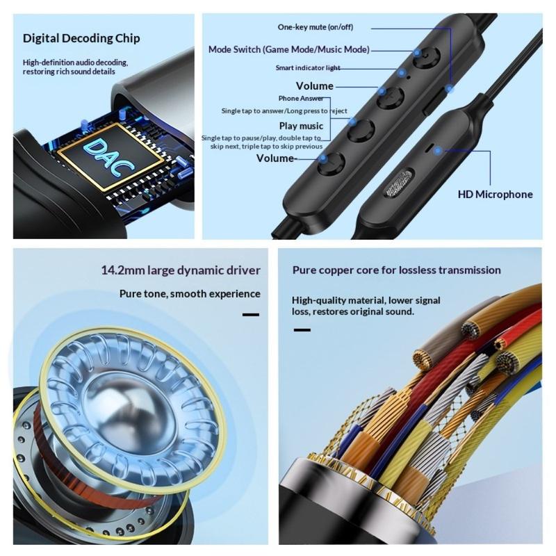De GC0098 Type-C bedrade oortelefoons zijn ontworpen voor meeslepende gaming en dagelijks muziek luisteren, en combineren krachtige geluidsprestaties met praktische functies voor dagelijks gebruik. Ze zijn uitgerust met een grote dynamische driver van 14,2 mm en een ingebouwde digitale decoderingschip, en leveren helder hifi-stereogeluid met diepe bassen en gedetailleerde hoge tonen. Met dubbele gaming- en muziekmodi, een stabiele Type-C-verbinding en een magnetisch ontwerp om in de knoop raken te voorkomen, zijn deze oortelefoons een betrouwbare keuze voor smartphones, tablets en andere Type-C-apparaten.