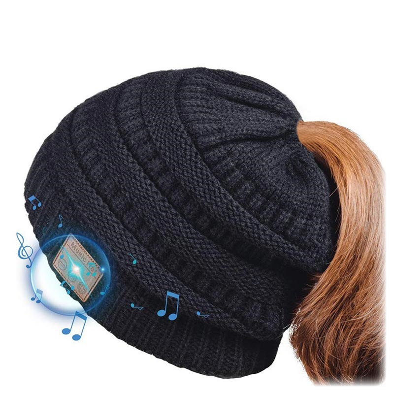 Blaas je afspeellijst op, zelfs als het buiten koud is, met deze Bluetooth-headset met gebreide wintermuts.