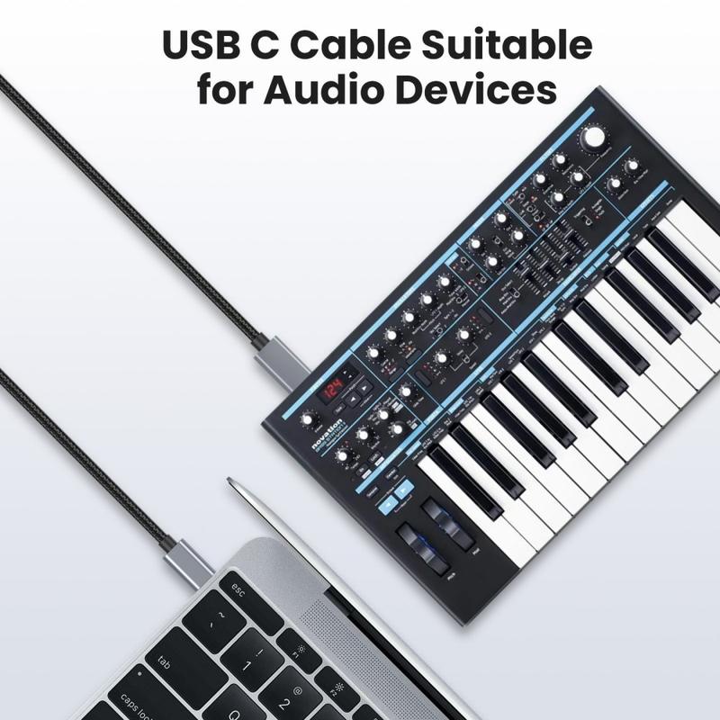 1.8m USB-C naar USB-B nylon printer- en MIDI-kabel / 480 Mbps gegevenssynchronisatie voor audio-interfaces, toetsenborden en printers