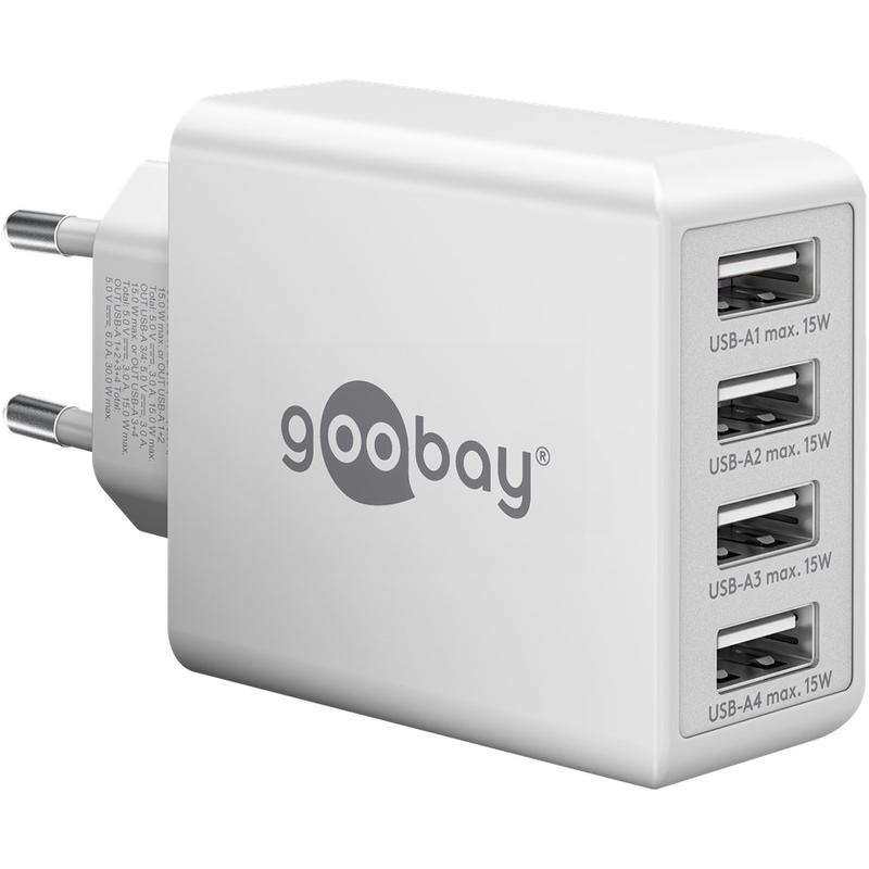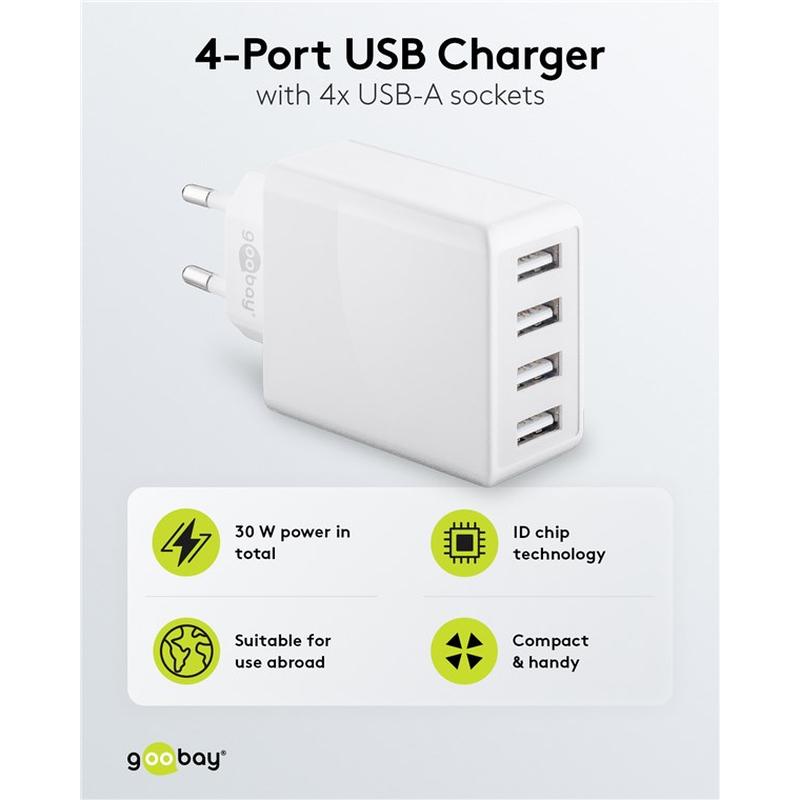 Goobay 30W 4x USB-A-wandlader - 4-poorts wandadapter met slimme oplaaddetectie