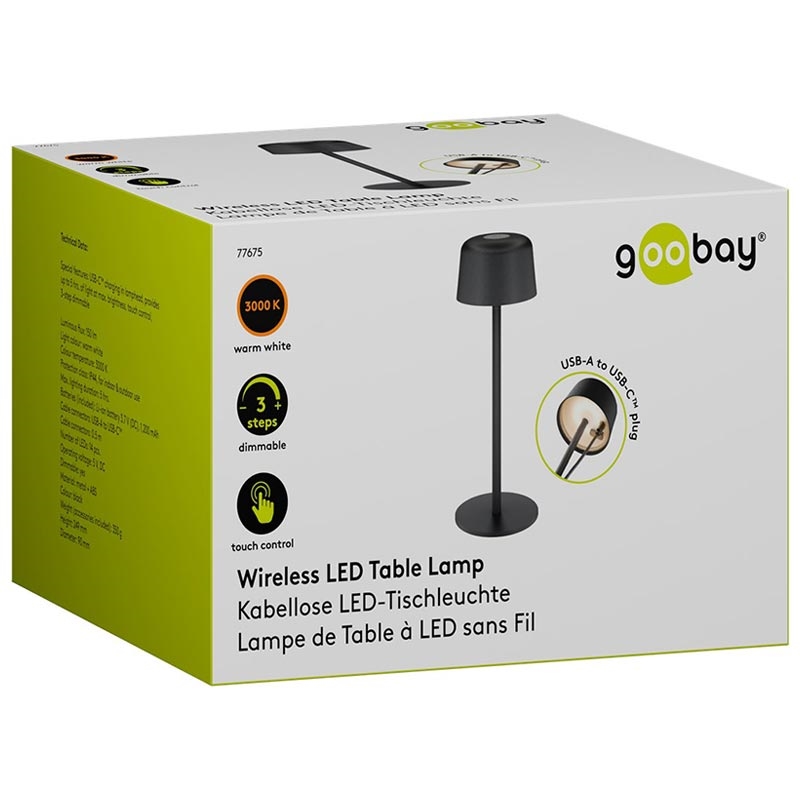 Goobay draadloze LED-tafellamp - maat S (25 cm), aanraakbediening, warm wit 3000 K, 150 lm, oplaadbaar via USB-C, IP44