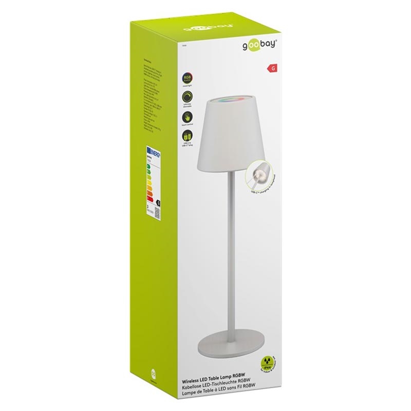 Goobay draadloze LED-tafellamp RGBW - aanraakbediening, warm wit 3000 K + RGB-kleuren, traploos dimbaar, oplaadbaar via USB-C, IP44