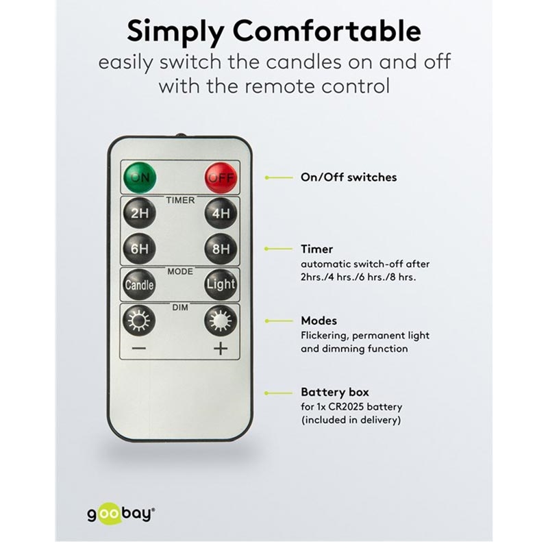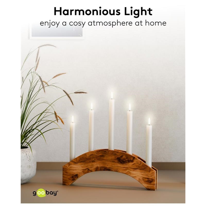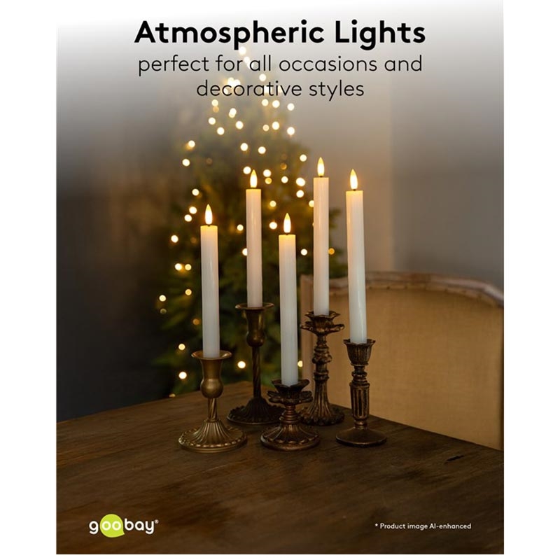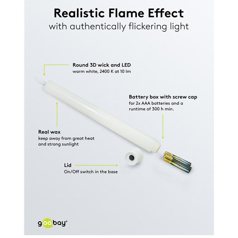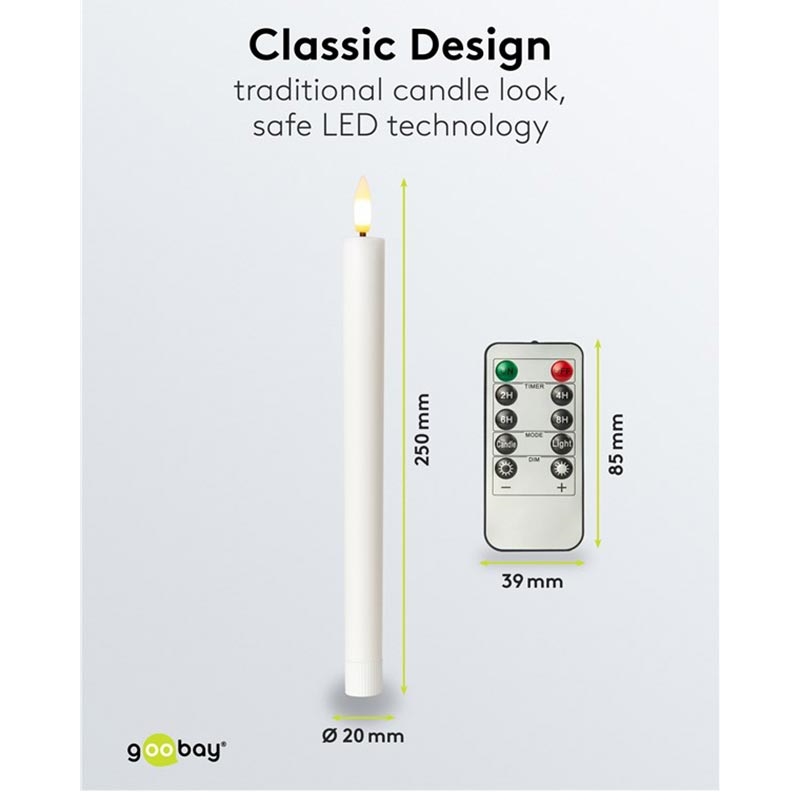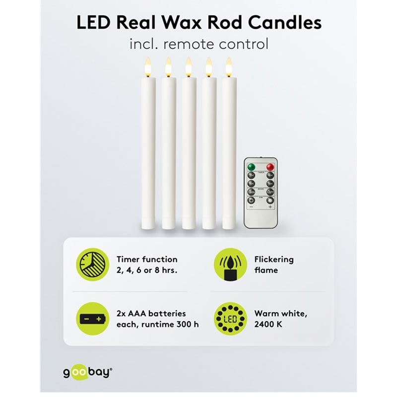 Goobay Set van 5 LED Echte Wax Taper Kaarsen - 3D Vlam, Afstandsbediening, Timer, Dimbaar, Warm Wit 2400 K