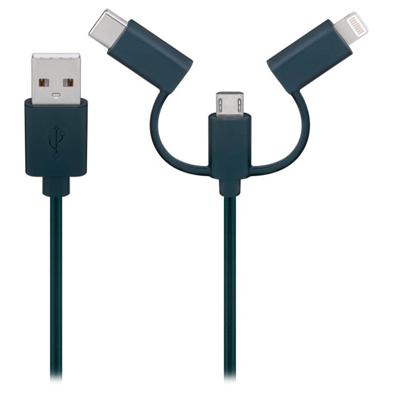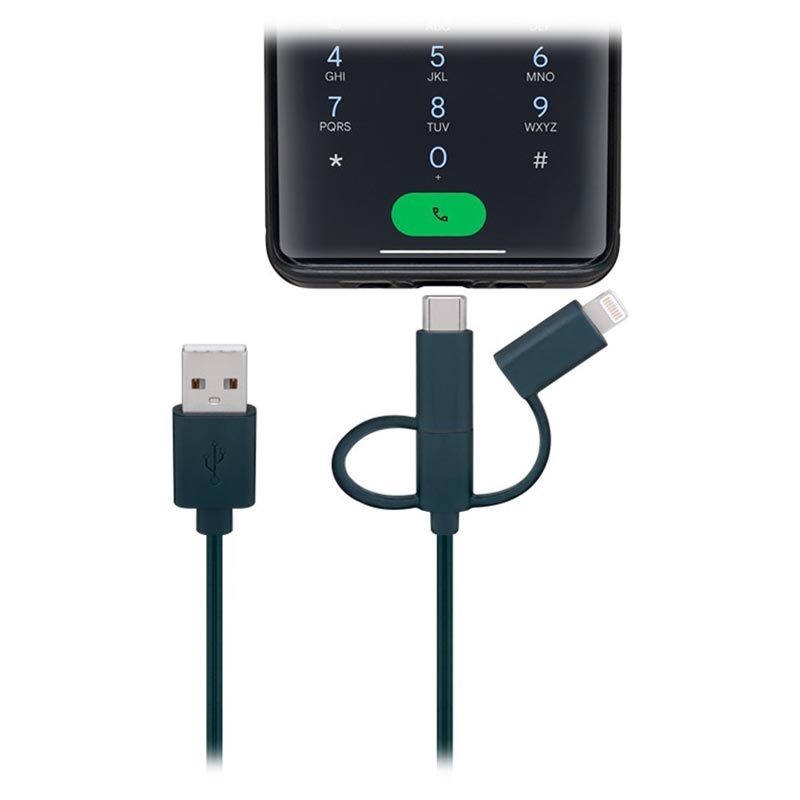 - Geïntegreerde USB-C, Lightning, en MicroUSB aansluitingen