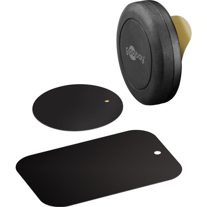 - De Goobay magnetische telefoonhouder voor auto's bevat 1x adapter met een zelfklevende pad en 2x metalen platen voor de mobiele telefoon