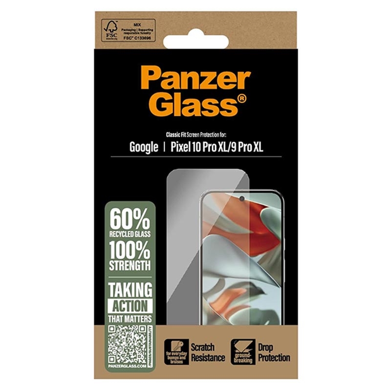 De platinasterkte PanzerGlass Classic Fit-schermbeschermer houdt het display van uw Google Pixel 10 Pro XL, Pixel 9 Pro XL in perfecte staat, beschermd tegen krassen en barsten. Deze zeer transparante schermbeschermer van gehard glas behoudt de gevoeligheid van het aanraakscherm en de beeldkwaliteit perfect. Dankzij de oleofobe en antibacteriële coating is het scherm van je Google Pixel 10 Pro XL, Pixel 9 Pro XL vrij van vlekken, vingerafdrukken en bacteriën.