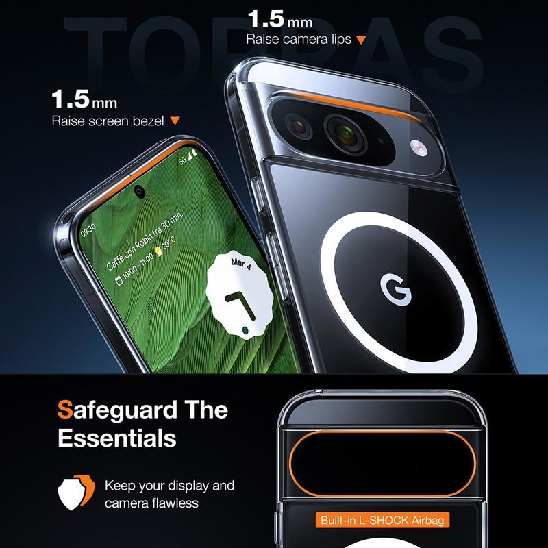 De Torras MagSafe-compatibele Transparante TPU Case voor Google Pixel 9, Pixel 9 Pro combineert stijl, bescherming en functionaliteit, waardoor het de perfecte keuze is voor gebruikers die een slanke, duurzame case willen die het ontwerp van hun telefoon benadrukt en tegelijkertijd MagSafe-gemak biedt.