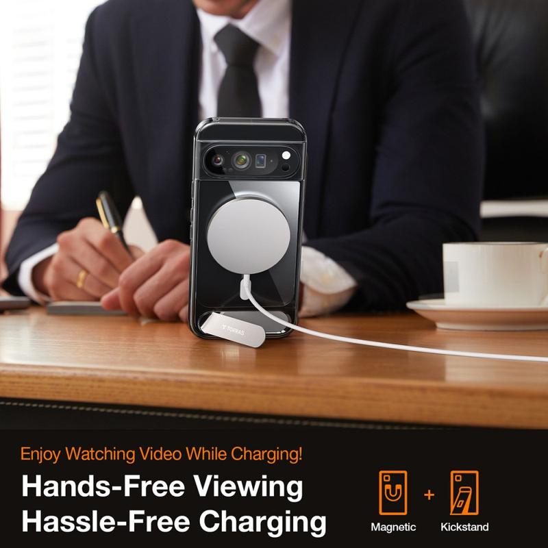 Verander je Google Pixel 9 Pro XL in zijn eigen kijkdock zonder extra zakvolume toe te voegen. De TORRAS Pstand combineert een slanke, opvouwbare stalen standaard met een 18 N magnetische ring voor rotsvaste bevestiging aan MagSafe-stijl laders en autohouders, allemaal verpakt in een schokabsorberende TPU schelp.