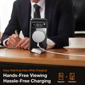 - Handsfree multi-angle standaard vouwt snel uit voor staand of liggend kijken en klikt vervolgens plat.
