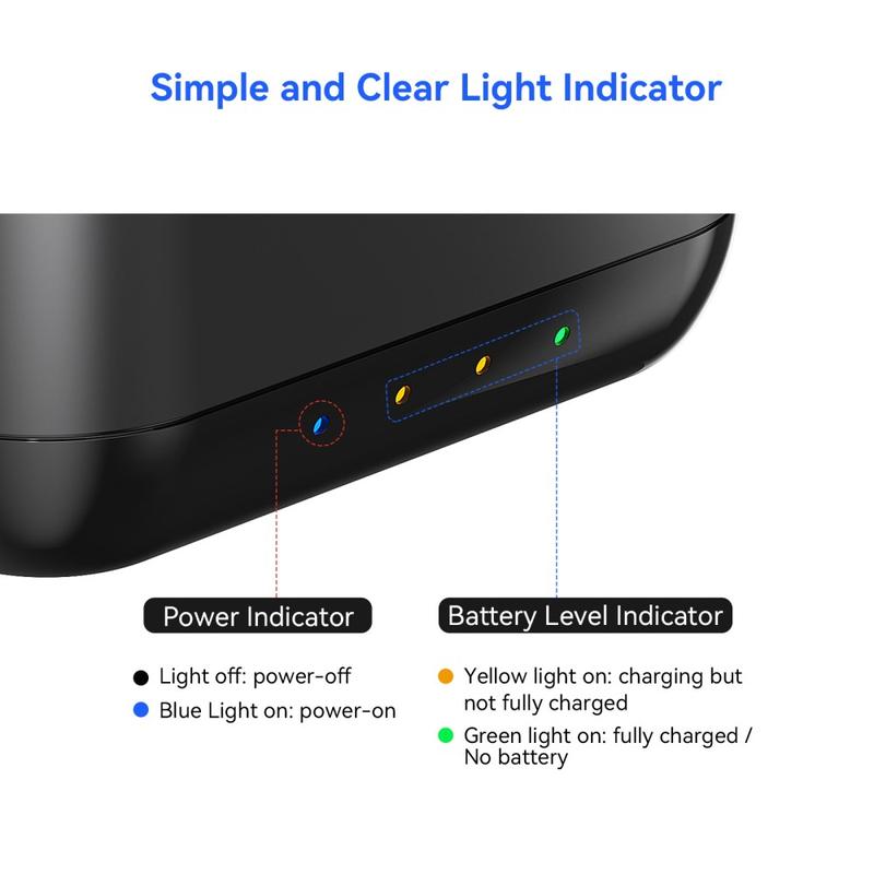 - Controleer eenvoudig de voortgang van het opladen met LED-indicatoren.