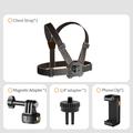 GP-032 Actioncamera-borstbandset - magnetische snelkoppelingsbasis, 1/4" mini-adapter en telefoonclip voor POV-opnames