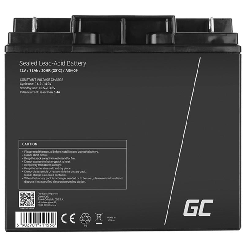 Green Cell AGM VRLA 12V 18Ah Onderhoudsvrije Batterij voor Grasmaaier, Scooter, Boot, Rolstoel