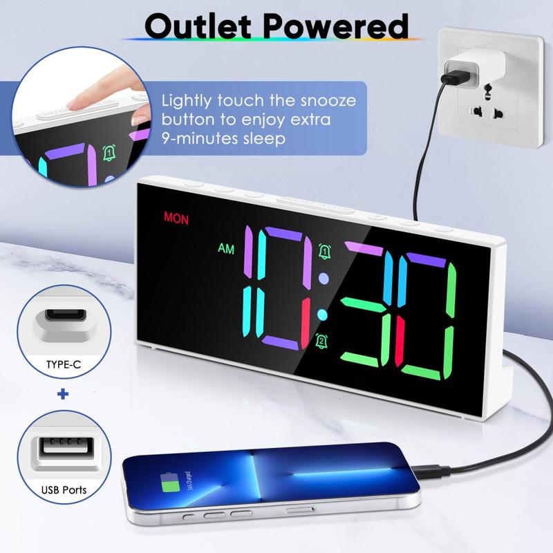 De GS-G11 RGB digitale wekker is een moderne tafelklok, ontworpen voor slaapkamers, woonkamers en bureaus waar goede zichtbaarheid en eenvoudige bediening belangrijk zijn. Het heldere LED-display biedt meerdere RGB-kleurmodi, terwijl u met de instelbare helderheid en het volume de wekker perfect kunt afstemmen op uw ruimte en dagelijkse routine. Dankzij de dubbele alarmfunctie, de handige sluimerstand en de geheugenback-up bij stroomuitval is dit een praktische wekker voor dagelijks gebruik die bovendien een stijlvolle gloed aan uw interieur toevoegt.