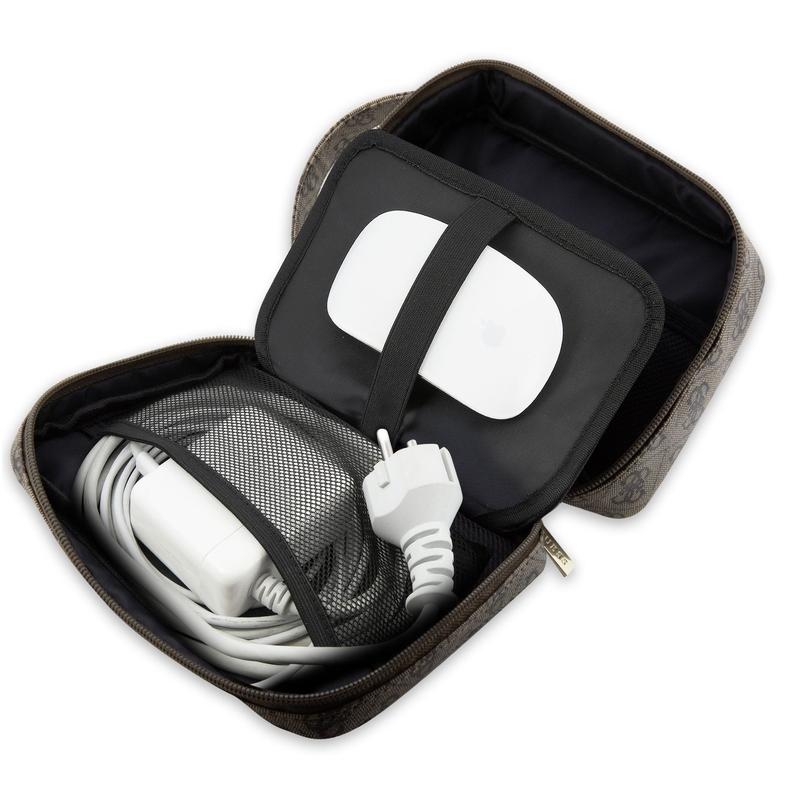 De Guess Travel Universal tas is de ideale reisgenoot voor iedereen die op zoek is naar een stijlvolle en handige manier om al hun telefoon-, tablet- of laptopaccessoires mee te nemen. De tas is gemaakt van hoogwaardig ECO leer en heeft een fijn gestructureerd oppervlak met het iconische Guess logo. Binnenin bieden goed ontworpen vakken voldoende ruimte voor opladers, powerbanks en stroomkabels. Het meest opvallende kenmerk van deze tas is de USB-A uitgang, zodat je een powerbank kunt aansluiten en je telefoon direct aan de zijkant van de tas kunt opladen. Met een strak design en gevoel voor stijl is deze tas perfect voor reizigers die waarde hechten aan functionaliteit en mode.