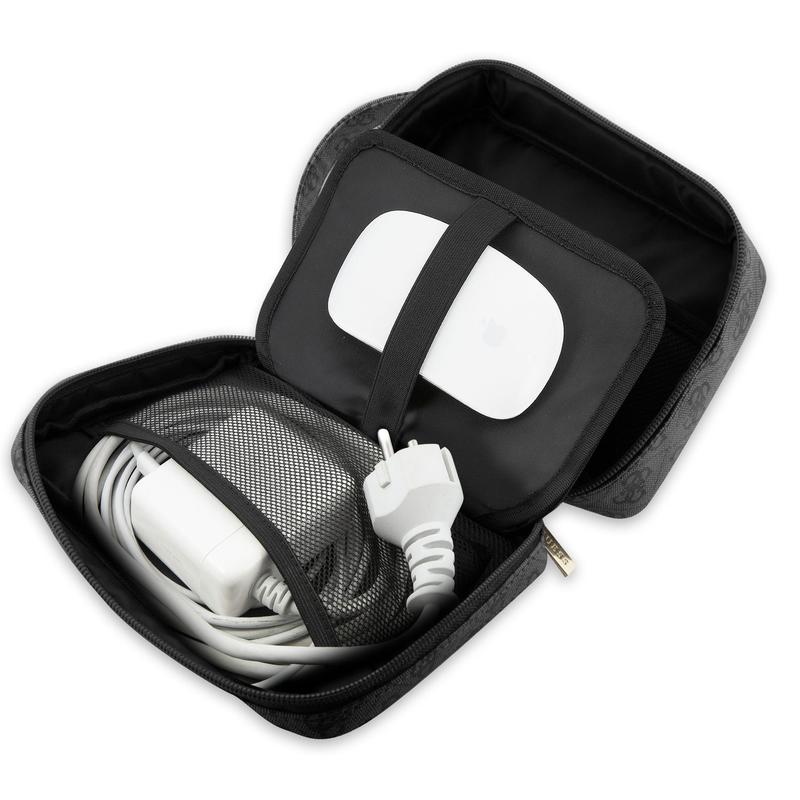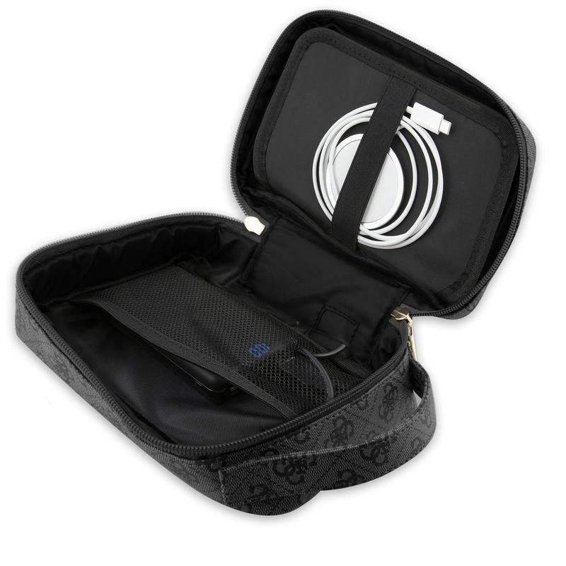 De Guess Travel Universal tas is de ideale reisgenoot voor iedereen die op zoek is naar een stijlvolle en handige manier om al hun telefoon-, tablet- of laptopaccessoires mee te nemen. De tas is gemaakt van hoogwaardig ECO leer en heeft een fijn gestructureerd oppervlak met het iconische Guess logo. Binnenin bieden goed ontworpen vakken voldoende ruimte voor opladers, powerbanks en stroomkabels. Het meest opvallende kenmerk van deze tas is de USB-A uitgang, zodat je een powerbank kunt aansluiten en je telefoon direct aan de zijkant van de tas kunt opladen. Met een strak design en gevoel voor stijl is deze tas perfect voor reizigers die waarde hechten aan functionaliteit en mode.