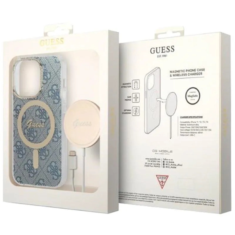 Guess 4G Edition Bundle Pack Hybride Hoesje & Magnetisch Draadloze Oplader voor iPhone 14 Pro - 20W