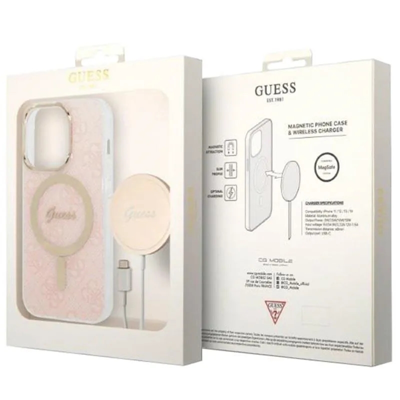 Guess 4G Edition Bundle Pack iPhone 14 Pro Hoesje & Draadloze Oplader - Roze