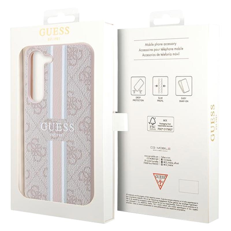 Spectaculair ontworpen hybride hoes Guess 4G Printed Stripe geeft je Samsung Galaxy S23 5G een stijlvolle en modieuze uitstraling en dient bovendien als een uitzonderlijke beschermer tegen krassen, stoten, vallen en andere alledaagse schade! Het is gemaakt van hoogwaardig polycarbonaat, polyethyleen en TPU-materialen, met een bedrukte streep over de behuizing en het Guess-logo in het midden.