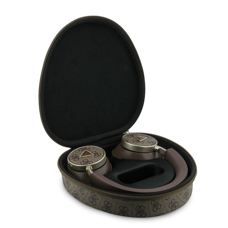 Guess 4G Triangle Logo ENC draadloze hoofdtelefoon - Bluetooth 5.4, ENC heldere gesprekken, tot 45 uur afspeeltijd, premium hoesje