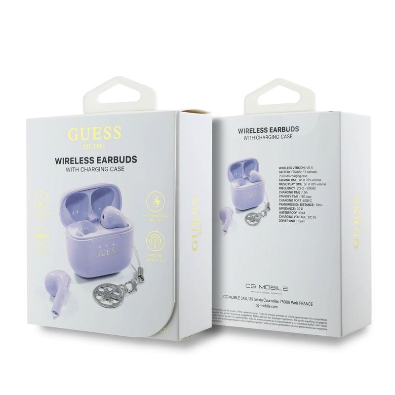 Guess Charm True Wireless oortelefoon met glanzend effect en klassieke logo-opdruk - Paars