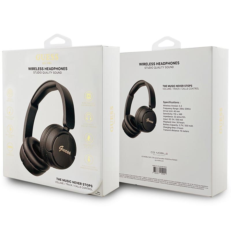 • Guess Metal Logo Script Bluetooth 5.3 on-ear koptelefoon - 30 uur speeltijd, USB-C snel opladen, IPX4 zweet- en spatwaterdicht