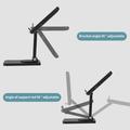 Functioneert als een houder voor zowel smartphones als tablets, met verstelbare hoogte voor verticaal uitrekken, hoekverstelling voor voorwaarts en achterwaarts kantelen, en een volledige 360-graden rotatie voor horizontaal kijken
