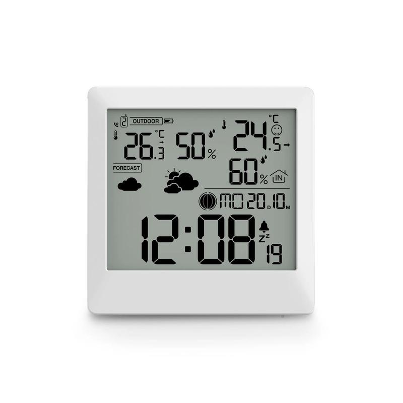 - Duidelijk digitaal display met temperatuur, vochtigheid, weersvoorspelling en maanfases
