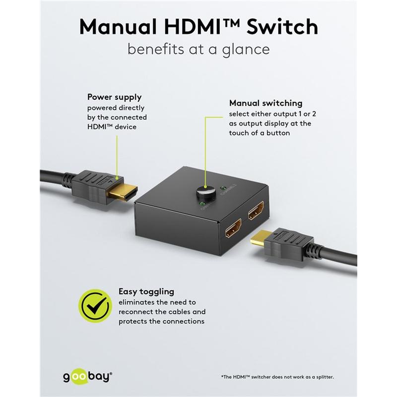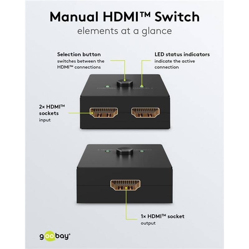 Handmatige HDMI™-omkoplampen 2 tot 1 (4K @ 30 Hz)