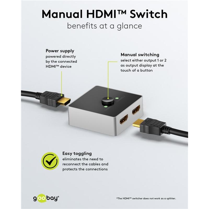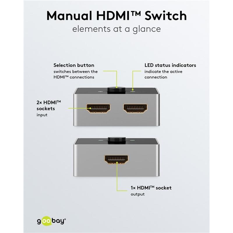 Handmatige HDMI™-omkoplampen 2 tot 1 (4K @ 60 Hz)