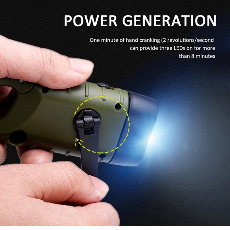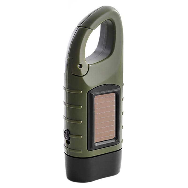 Deze zaklamp is zorgvuldig vervaardigd om uit te blinken in zowel veelzijdigheid als veerkracht, waarbij naadloos gebruik wordt gemaakt van de kracht van zonne-energie en handmatig opladen om ononderbroken verlichting te garanderen, precies wanneer dat het meest nodig is. Deze zaklamp wordt aangedreven door een batterijcapaciteit van 40 mAh en biedt langdurig licht om u door uw avonturen te leiden. Uitgerust met drie LED-lampkoppen, biedt hij twee verlichtingsmodi: wit licht en sterk licht – en een helderheid van 13 lm.