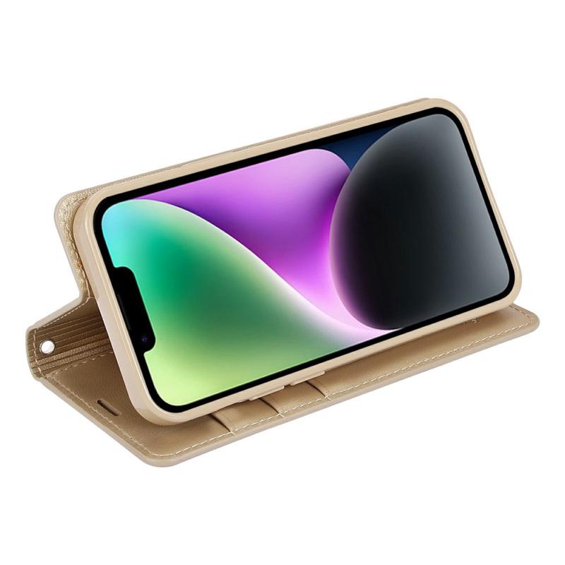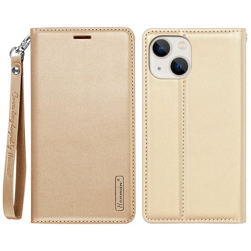 • HANMAN Minor Series Wallet-telefoonhoesje voor iPhone 14, PU-leer + TPU-opvouwbare standaard Magnetische auto-absorberende hoes
