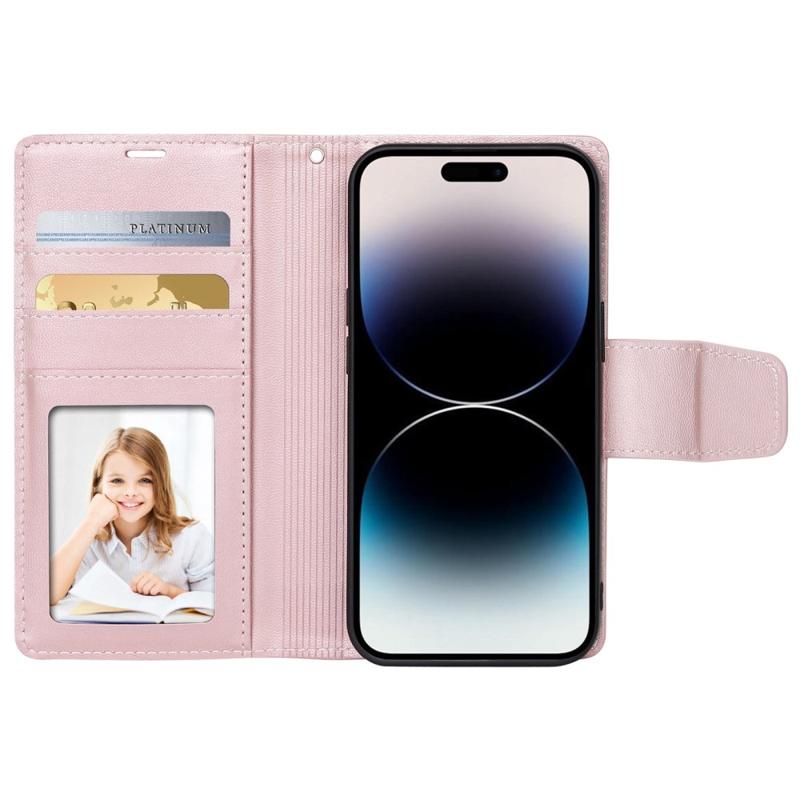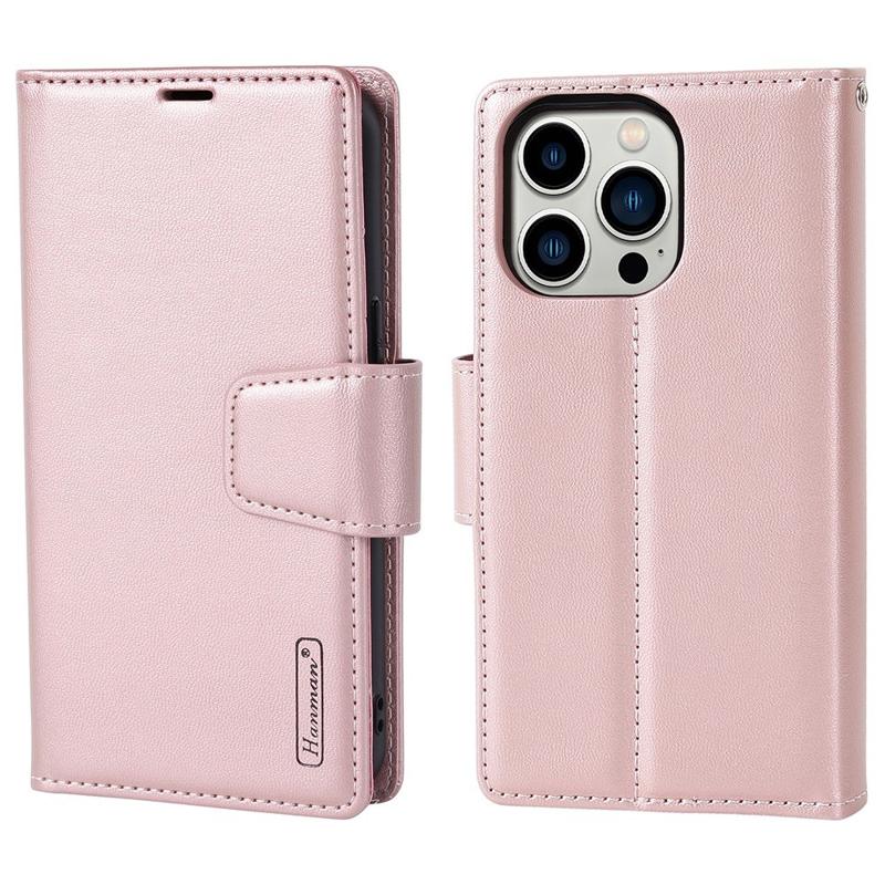 HANMAN Miro2-serie voor iPhone 14 Pro PU lederen portemonnee telefoonhoes magnetische afneembare standaard Flip Cover